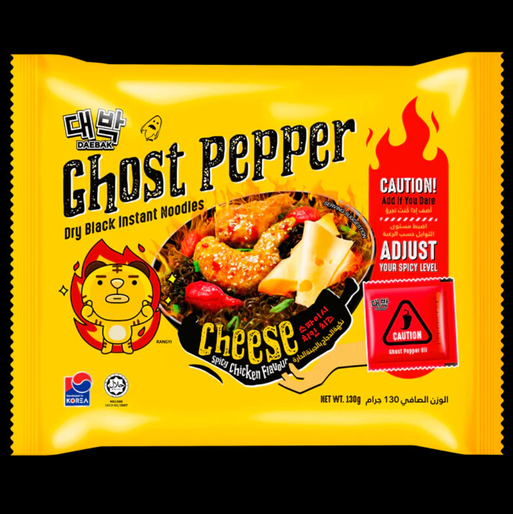 DAEBAK GHOST PEPPER CHEESE SPICY CHICKEN FLAVOUR DRY BLACK INSTANT NOODLES SINGLE PACKET